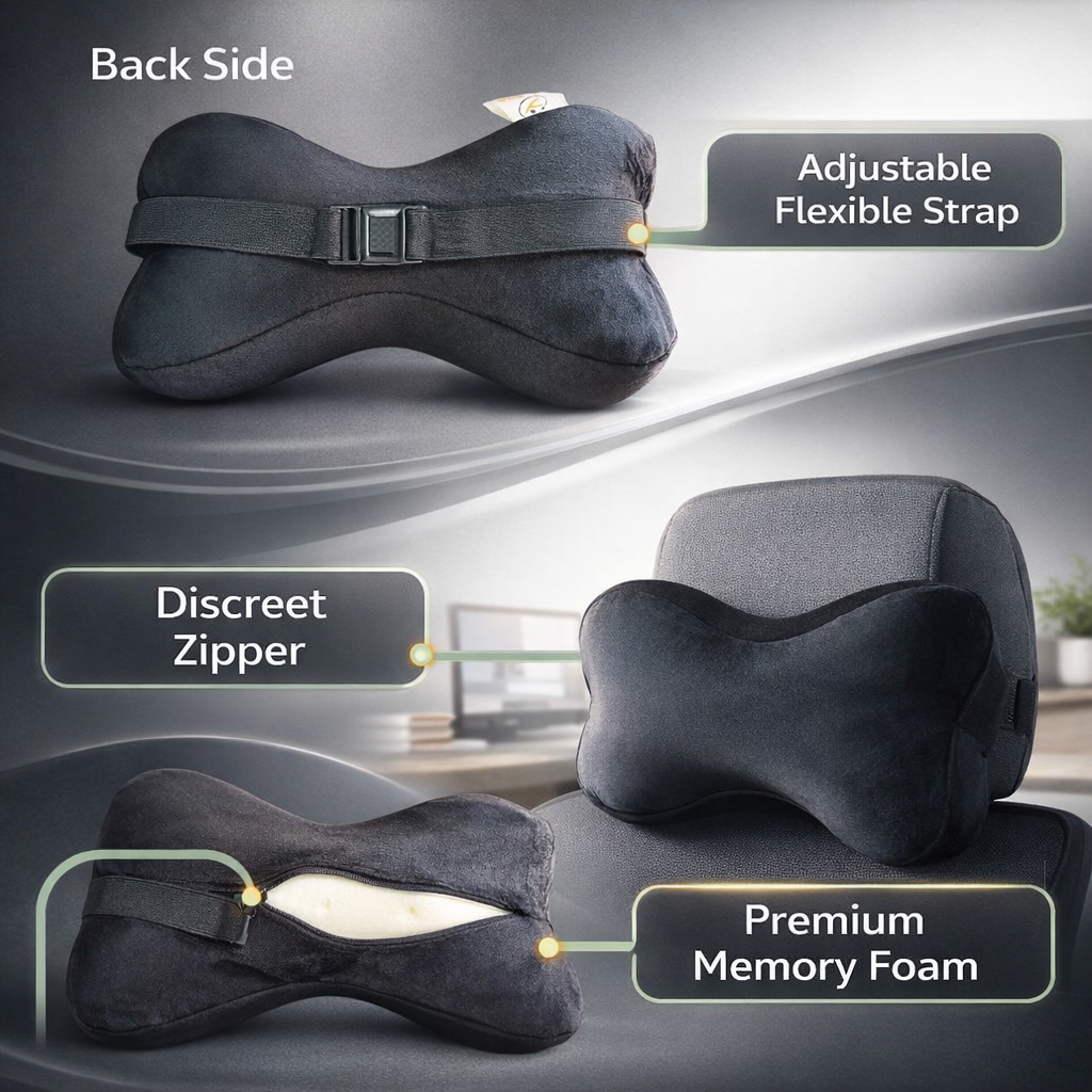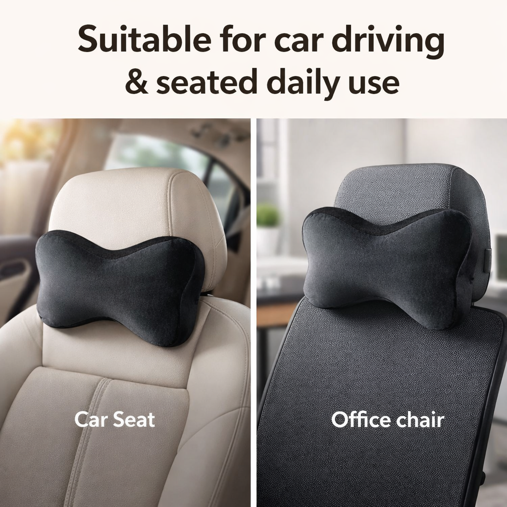Bone-shaped ergonomic design → follows natural neck curve → relaxed head & neck support while driving