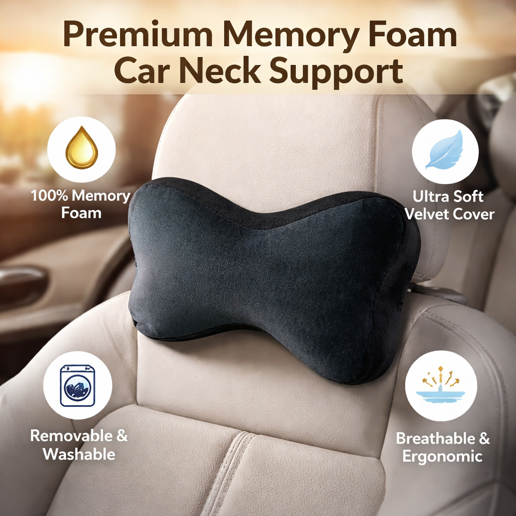 High-quality memory foam gently adjusts to your neck and returns to shape after use, offering consistent comfort across repeated drives.