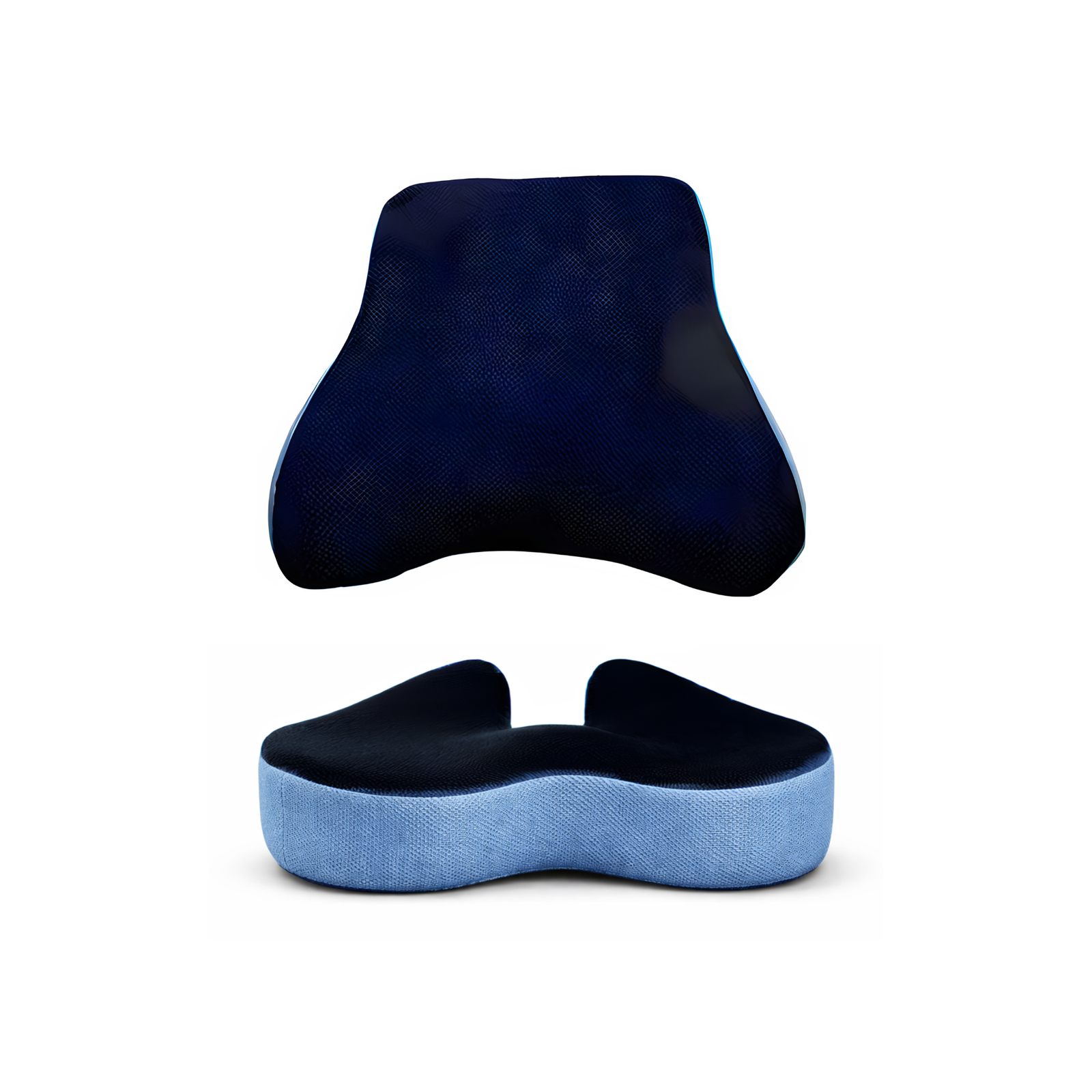 Both cushions use high-density memory foam that adapts to body pressure and returns to shape after use. The breathable fabric cover improves airflow during long sitting sessions, while the non-slip base helps keep the cushions securely positioned.