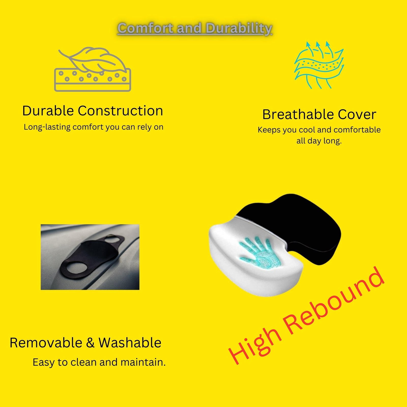 Anti-skid bottom layer → keeps cushion in place on seats → stable sitting without frequent adjustment.