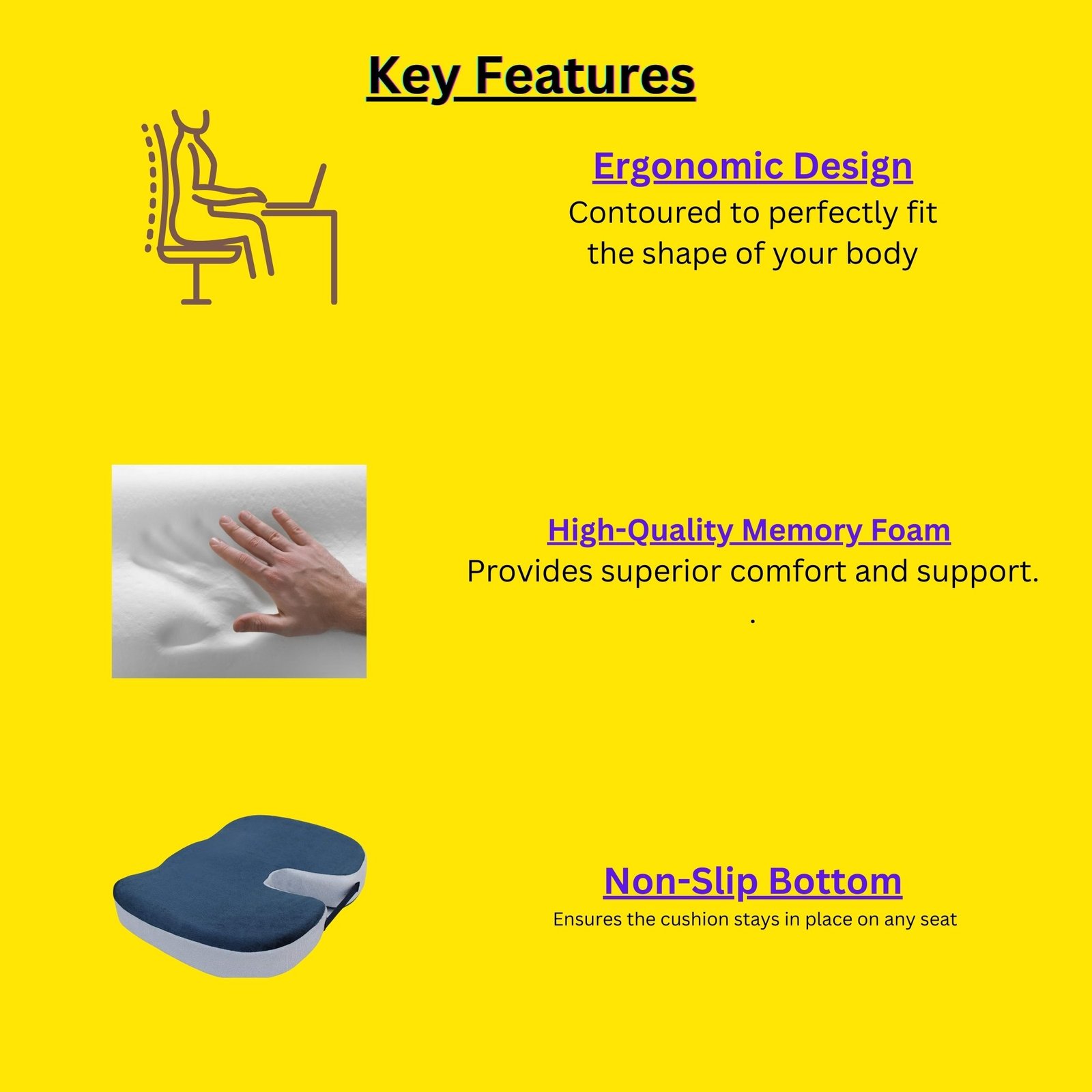 Elevate your sitting experience with the Dr. Wings Seat Cushion, a game-changer in comfort and support. Designed with ergonomic excellence, this seat cushion provides optimal support for pressure relief during extended periods of sitting. The memory foam technology ensures a personalized and comfortable seating experience by conforming to your body's contours. Perfect for various chairs, including office chairs, car seats, and wheelchairs, the Dr. Wings Seat Cushion enhances comfort wherever you need it. The breathable mesh cover promotes airflow, keeping you cool and comfortable. With a non-slip bottom, the cushion stays securely in place, providing stability and preventing sliding. Take your comfort on the go with the portable and lightweight design, ensuring a comfortable seat anywhere you travel. Trust in the doctor-recommended quality for a seat cushion that prioritizes your comfort and posture.