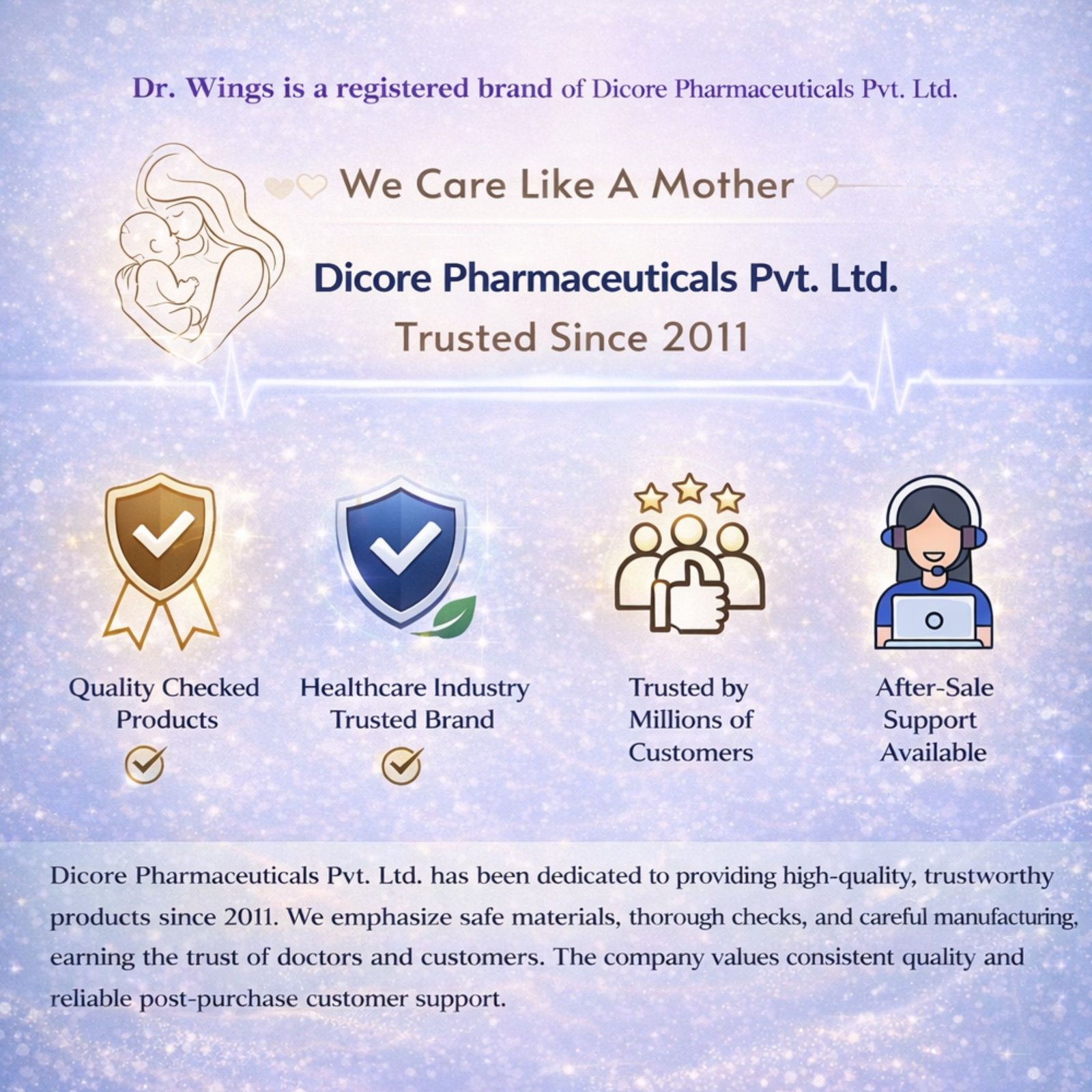 This Dr.Wings Curve Neck Rest is developed using orthopedic comfort principles with a care-first approach from Dicore Pharmaceuticals Pvt. Ltd., trusted since 2011. Built for consistent comfort and durability, it reflects the same quality standards followed across Dr.Wings products.
