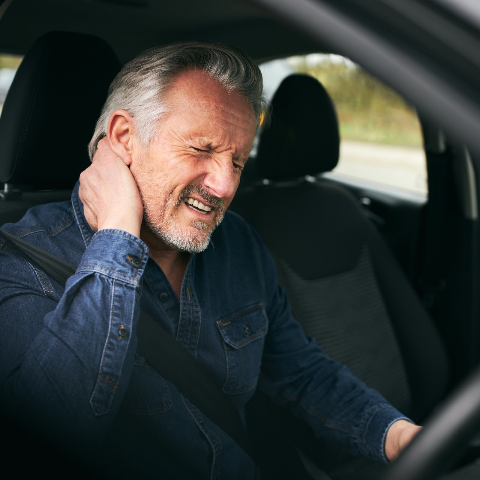 The curved shape supports the neck and head in a balanced position, helping maintain a relaxed posture while sitting and driving.