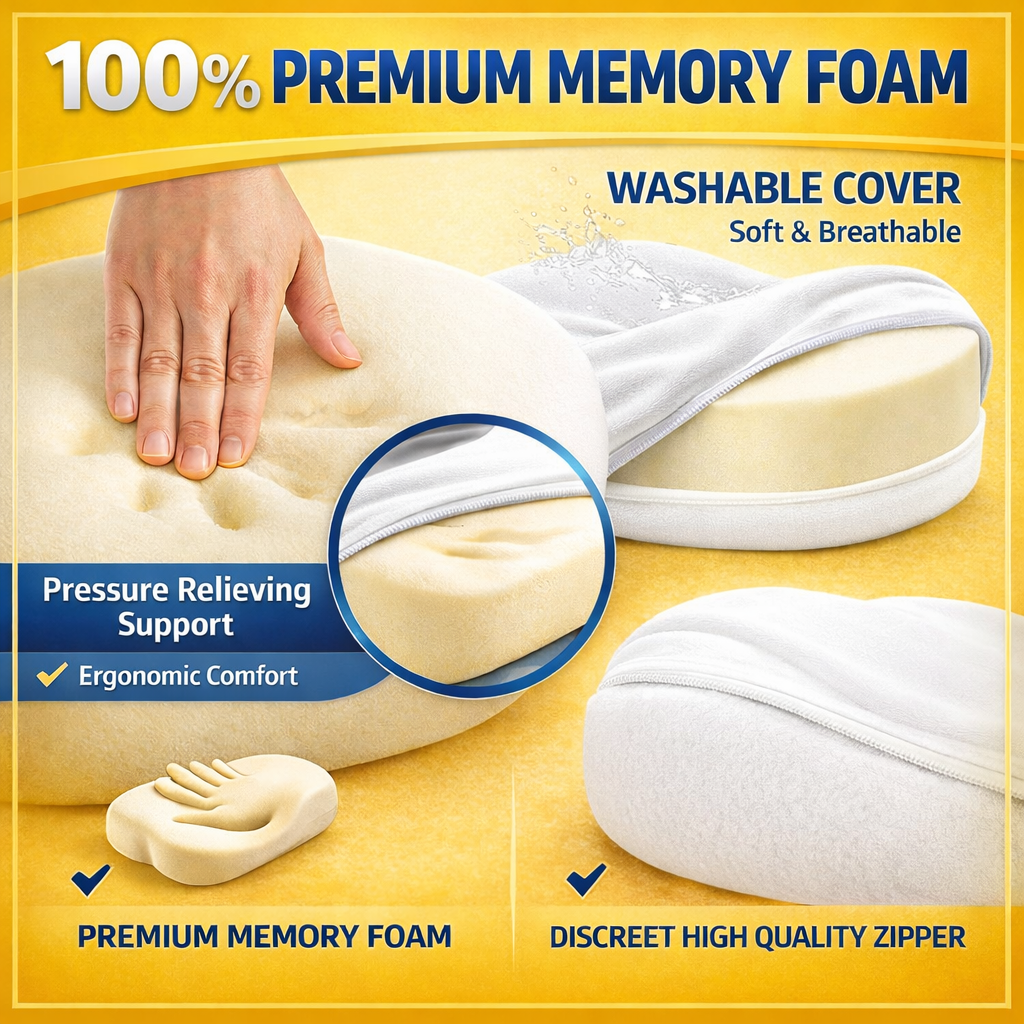 100% Soft Orthopedic Memory Foam → Gentle Adaptive Support → Relaxed Neck While Driving