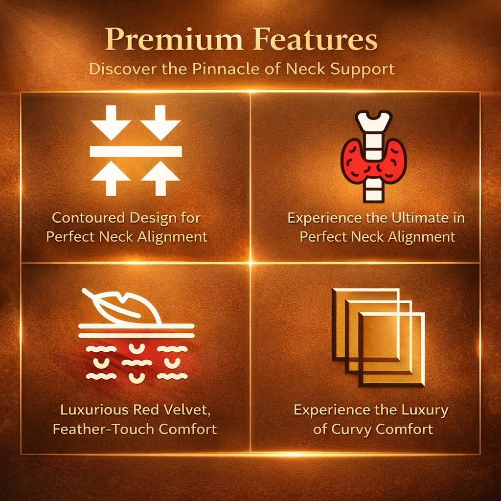 Adaptive memory foam neck contour → maintains relaxed head position during long sitting → comfortable support while travelling, studying, or working on a computer